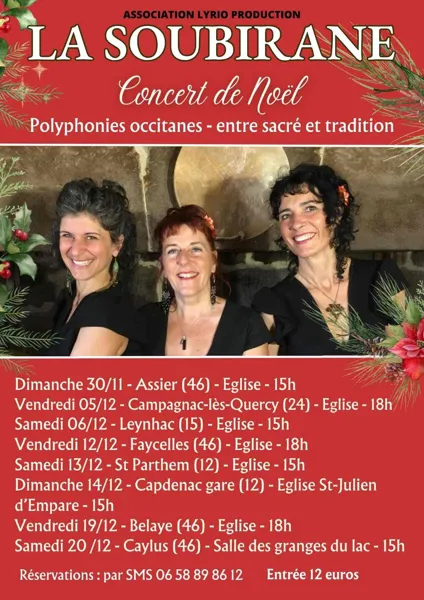 Le trio polyphonique La Soubirane chante les fêtes de Noël en Occitan, mêlant chants sacrés et traditionnels du Béarn, de Provence, du Quercy et de l’Aveyron.