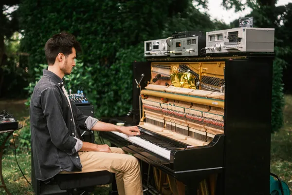 C’est en s’inspirant des multiples façons dont les oiseaux évoluent et habitent un espace que Lorenzo Naccarato explore de nouvelles façons d’habiter sa propre musique. Cette recherche l’amène à créer son propre dispositif sonore. Il imagine un nouvel instrument, associant à son piano droit un petit orchestre de magnétophones cassettes et une platine vinyle modifiée. Pendant ses performances, le pianiste interprète ses compositions en piano solo et s’aventure dans des situations expérimentales.