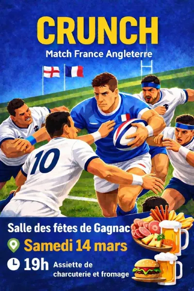 ???????? Le CRUNCH est de retour ! ????????Venez vibrer pour le choc France ???? Angleterre dans une ambiance de folie ????????❤️???? Salle des fêtes de Gagnac???? Samedi 14 mars???? 19h